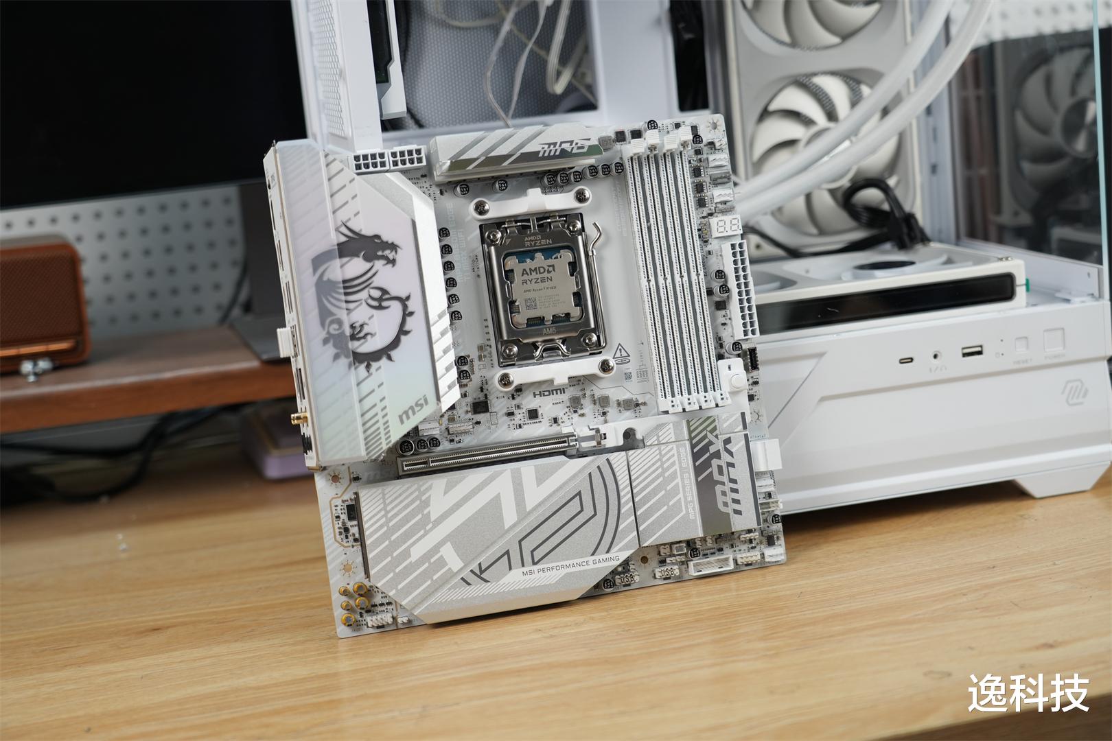 主板兼容上,最大支持M-ATX规格,市面上多数主流主板都适用,都能顺利安装,不存在尺寸问题。这次使用的是微星MPG B850M EDGE TI MAX WIFI刀锋钛主板,作为MATX板型中的性能标杆,以纯白高颜值与硬核配置征服了众多玩家。其采用8层服务器级PCB与2oz加厚铜设计,搭配14+2+1相智能供电(核心每相80A DrMOS),辅以双8Pin供电接口与层叠式VRM散热装甲,可轻松驾驭AMD锐龙9 9950X3D等旗舰处理器,即使长时间高负载运行也能保持稳定。