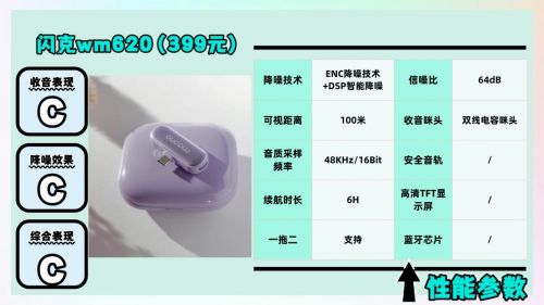 2.4G传输标称200米,实测100米内信号稳定,延迟<20ms,音画同步无压力,苹果版获MFi认证,连接适配性较好。发射器单次续航5小时,充电盒补电后总续航15小时,支持边录边充,满足中短时长拍摄,充电盒数显屏可直观查看电量。但缺点明显:无内录功能,信号中断易丢素材;塑料外壳抗冲击性一般,碰撞后收音精度可能衰减;Type-C与Lightning版本需单独购买,换设备成本高;接收器无冷靴接口,相机拍摄需额外固定,强光下数显屏亮度不足,电量查看不便。