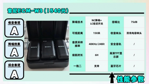 索尼ECM-W3发射器重17g,磨砂机身搭配可旋转背夹,夹衣领时近乎无感,久戴也不会拉扯衣物变形,防尘防滴设计适配户外多变环境。一拖二设计支持双人分轨收音,搭配高信噪比咪头,48kHz/24Bit数字传输让室内访谈人声清晰无底噪,安全音轨功能还能同步录制低20dB备份,避免高声爆音。单档降噪无法适配复杂场景,闹市中车流声抑制不足,户外4级风时防风罩压制力有限,气流声易混入;发射器开关阻尼偏轻,婚礼等场景易被误触关闭,徒增拍摄风险;全指向特性在多人场景易收录杂声,主声源辨识度下降。