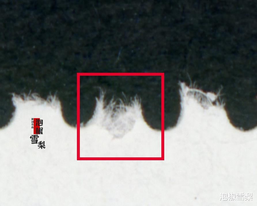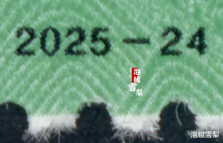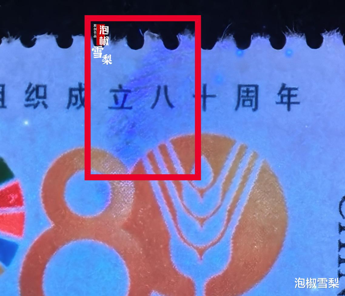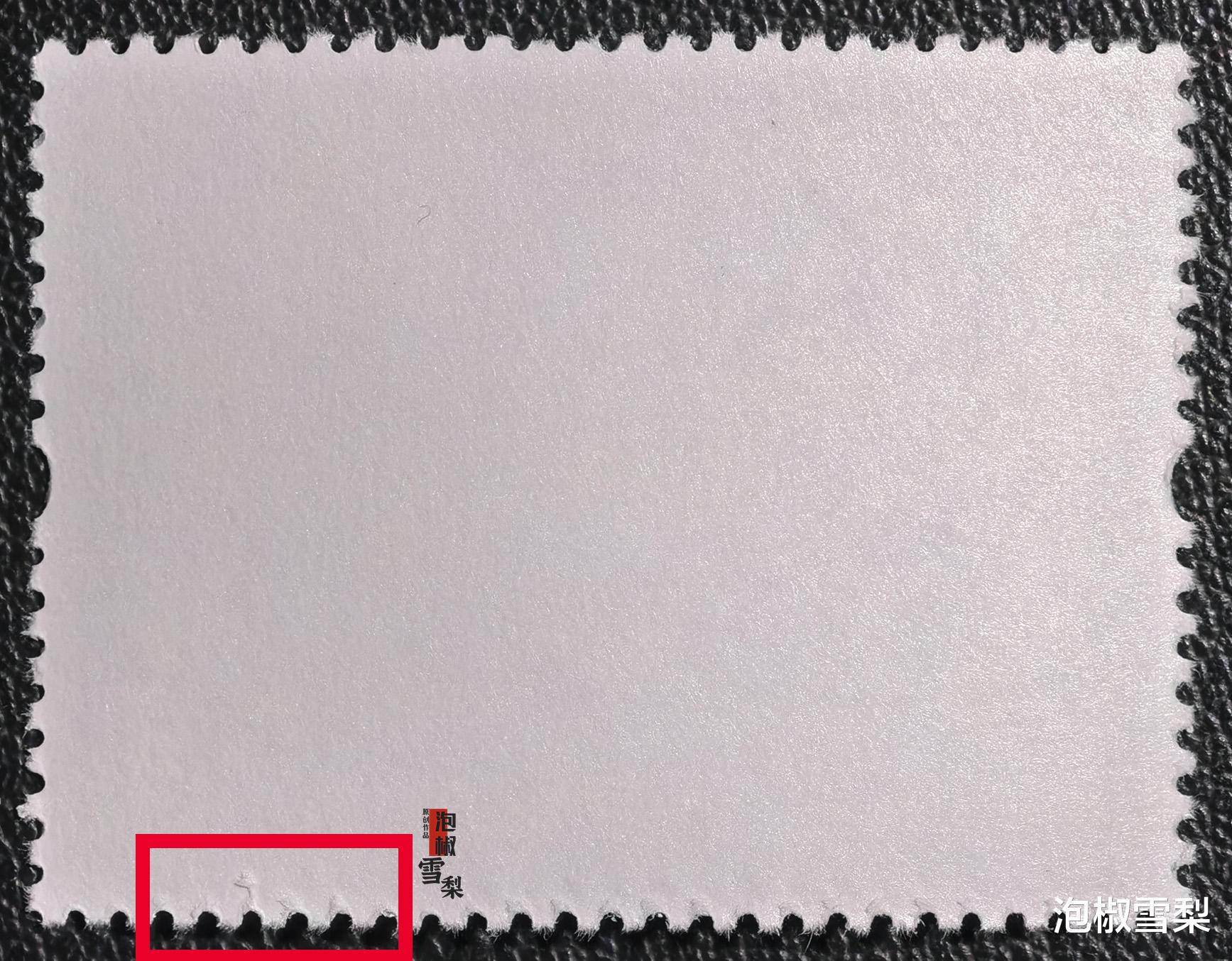 邮票上部再次出现荧光指纹,为工作人员手指沾上无色荧光油墨后,抓拿邮票时留下的痕迹,此类污染应是少数现象,2025年发行的邮票中荧光指纹是第二次出现。