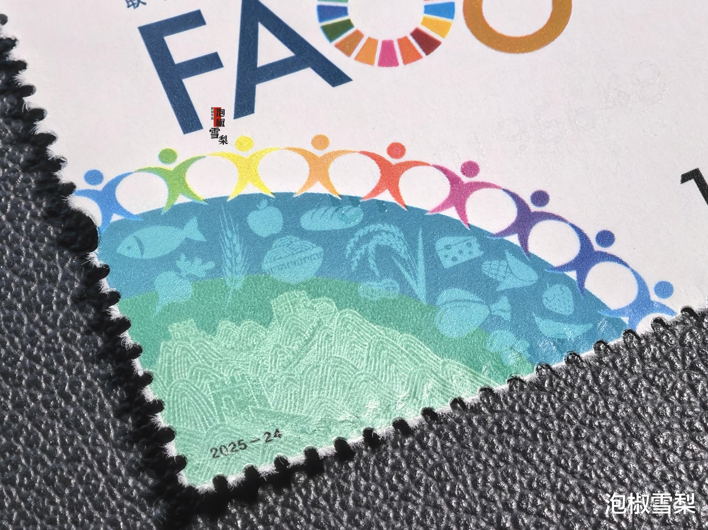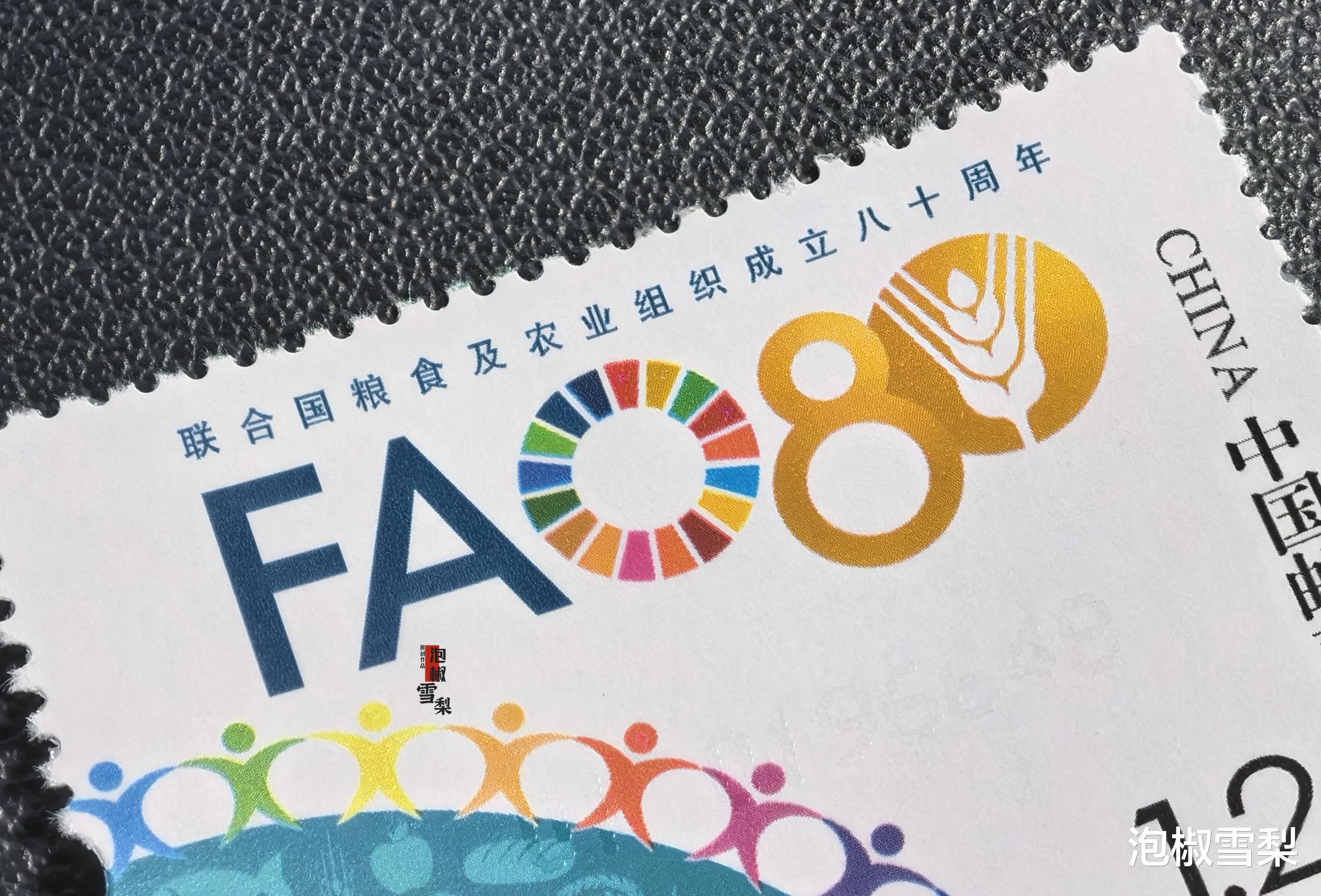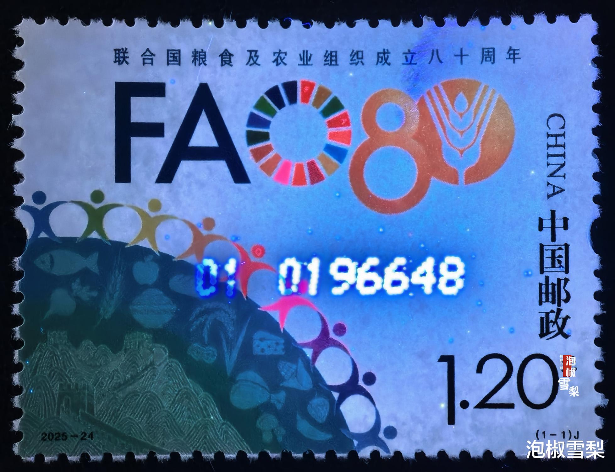 2025年10月16日,中国邮政发行《联合国粮食及农业组织成立八十周年》邮票1套1枚,北京邮票厂影写版印刷,设计者沈嘉宏,计划发行量460万套,总面值552万元。