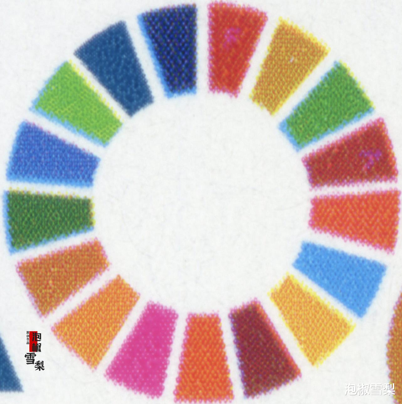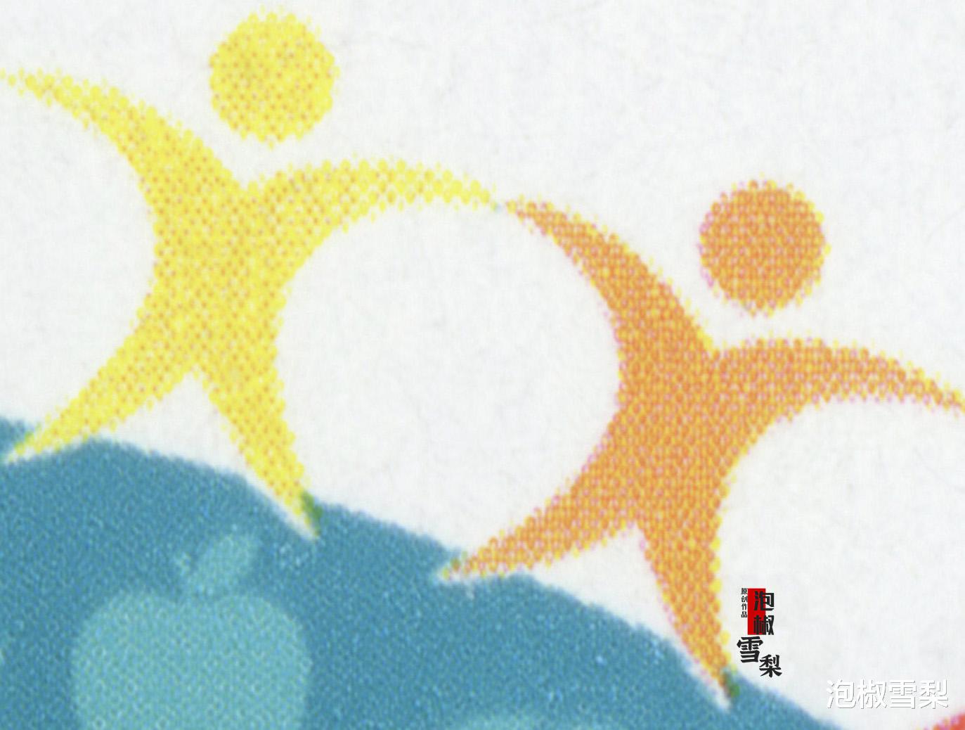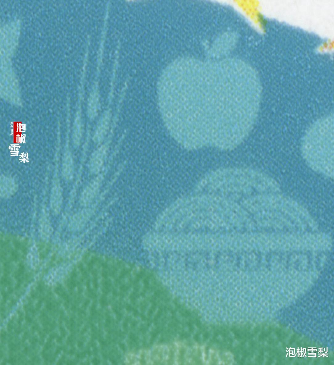 配色上整体非常亮丽,9个小人中共有8种不同颜色,有很强的象征性,各类食物图案以浅色环绕在长城周边,既表达了粮食是人类生存的基础,也彰显了2025年世界粮食日的主题:手拉手共倡多样美食,聚合力同创美好未来。