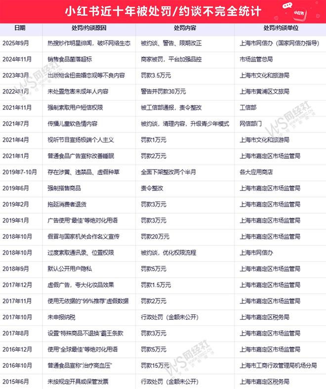 就在丽江事件引发关注的同时,小红书平台还因其他问题接连被监管部门约谈。2025年9月,小红书因在热搜榜单频繁呈现炒作明星个人动态和琐事类词条等不良信息内容,被网信部门依据《网络信息内容生态治理规定》采取约谈、责令限期改正、警告等处罚措施。国家网信办表示,将“持续聚焦破坏网络生态违法违规突出问题,发挥网络执法‘利剑’作用,督促网站平台履行主体责任和社会责任”。