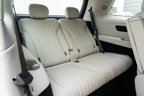 第三排的乘坐体验是很多六座 SUV 的 “短板”,但深蓝 S09 却把这里打造成了 “舒适区”。877mm 的腿部空间让身高 170cm 的成年人坐下后仍有一拳余量,座椅宽度与厚度均向第二排看齐,配合加热功能与独立杯架,长途乘坐完全不会有 “坐小板凳” 的局促感。