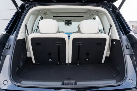 空间灵活性上的差距更显悬殊。将深蓝 S09 第三排座椅放倒后,后备箱容积瞬间扩展至 1392L,我们不仅轻松装入了三个人的摄影器材、折叠自行车,甚至还塞进了一个儿童推车,剩余空间仍能放下野餐垫和露营帐篷。