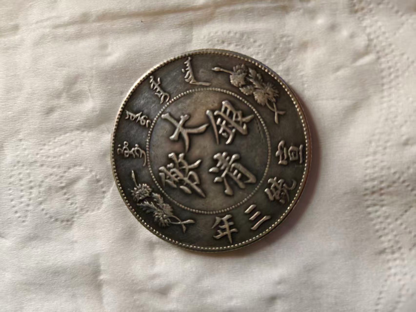二、工艺巅峰:方寸间的 “龙图腾” 与美学盛宴正面:皇权与传统的融合币面中央 “大清银币” 四字苍劲有力,外围环刻满文与 “宣统三年” 字样,两侧花卉纹饰典雅细腻,既彰显皇权威严,又暗藏传统美学的婉约。
