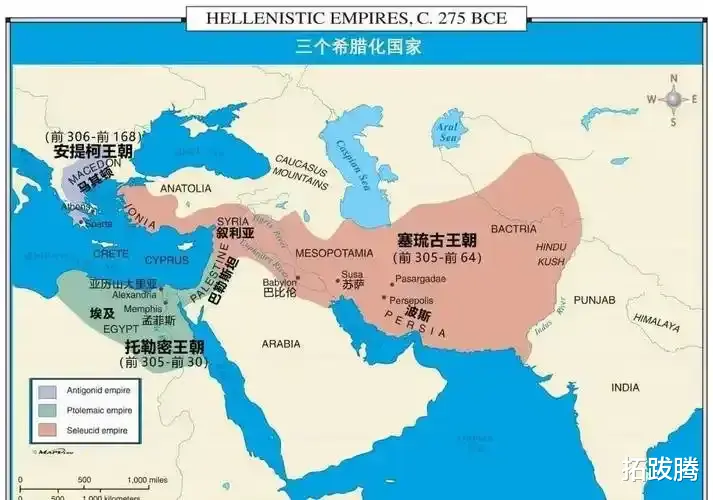 东征后,希腊的文化艺术和语言向东方传播,影响了包括埃及、西亚、中亚乃至西域的广大地区,希腊语成为了当时的国际通用语。在罗马帝国崛起前,近东的广大土地都被亚历山大手下将领建立的继业者国家统治。