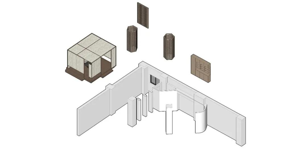 空间中未见直接宗教符号,而是以文化再造的方式进行表达。如建筑入口“莲花垂柱”形似古建筑柱础,实为装饰亦为“莲意”象征;入口的七个孔暗藏“7”这一佛教数字;一楼木栅设有“融”字铭文,二楼则藏有法师墨迹,光线照射时若隐若现,形成“窥探式”的叙事体验。