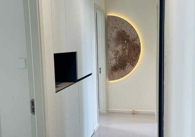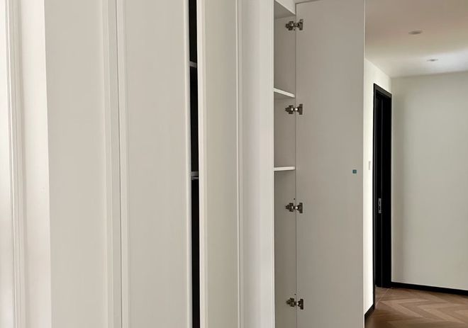 在入住后你会发现,在不占用过道通行空间的前提下,却偷出了整面墙的收纳空间。