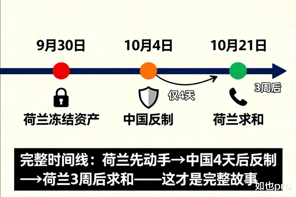 你看这个顺序:荷兰先冻结资产,中国4天后反制,3周后荷兰主动求和。