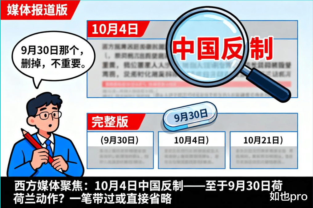 你看这次的报道,大部分聚焦在10月4日中国的反制措施,9月30日荷兰冻结资产要么轻描淡写,要么干脆不提。这样一来,不了解背景的人看到的就是中国突然发难。但只要把9月30日那个节点补上,故事性质立刻就变了——从主动进攻变成被动反击。