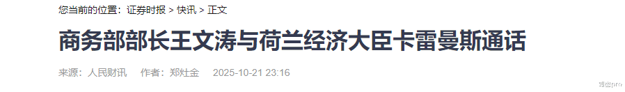 10月21日,荷兰部长主动给中国商务部长打电话,说要建设性解决。根据彭博社报道,王文涛在电话中警告,荷兰的做法严重影响全球供应链稳定。