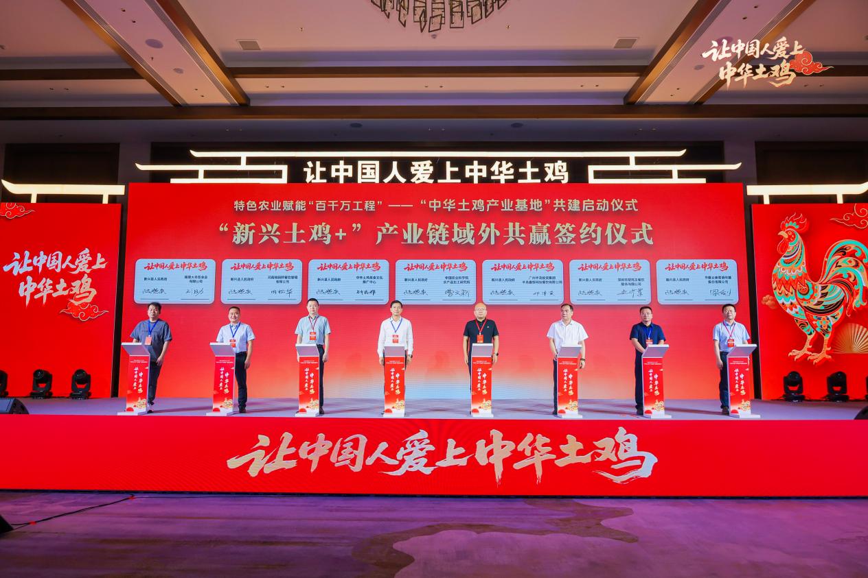 做优“土特产”,奋进“百千万”。8月12日,“中华土鸡产业基地”共建启动仪式在广东省云浮市新兴县举办,活动以“让中国人爱上中华土鸡”为主题,共商发展大计,共谋合作新篇。农业农村部原总农艺师、中国合作经济学会会长孙中华,中国食品工业协会品牌战略工作委员会秘书长曾黔,新兴县委书记陈哲江,温氏股份董事长温志芬、总裁黎少松等出席活动。