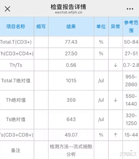 今年CD4是359,CD4/CD8是0.56,去年CD4是744,CD4/CD8是0.51