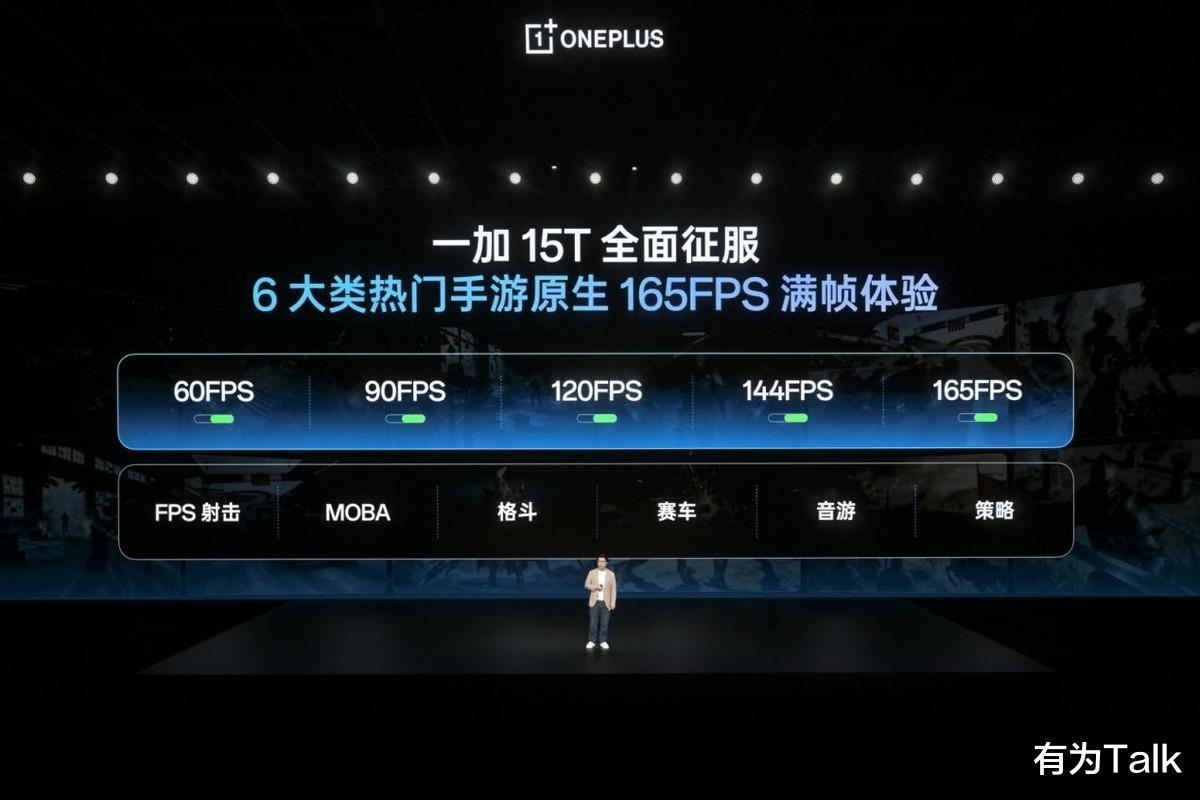 在第五代骁龙 8 至尊版移动平台与独家自研芯片级游戏技术新一代「风驰游戏内核」加持下,一加 15T 成为小屏手机中唯一支持 165 超高帧游戏体验的产品。相比普通 120 帧,165 超高帧每秒可多输出 45 帧画面,显示速度提升 27%,操作响应时间缩短 10ms,操控速度提升 17%,能够助力用户在瞬息万变的对战中更快捕捉敌人信息,获得更大竞技优势。一加 15T 支持《和平精英》、《三角洲行动》等主流 FPS 射击类游戏原生 165 超高帧模式,同时支持MOBA、格斗、赛车、音游、策略共六大类热门手游原生 165 帧超高帧率,引领小屏手机游戏体验进入超高帧时代。