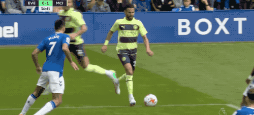 第37分钟,马赫雷斯送出传中,京多安大腿停球,接着一个完美的毽球动作,皮球直奔死角,皮克福德扑救不及,曼城取得领先。