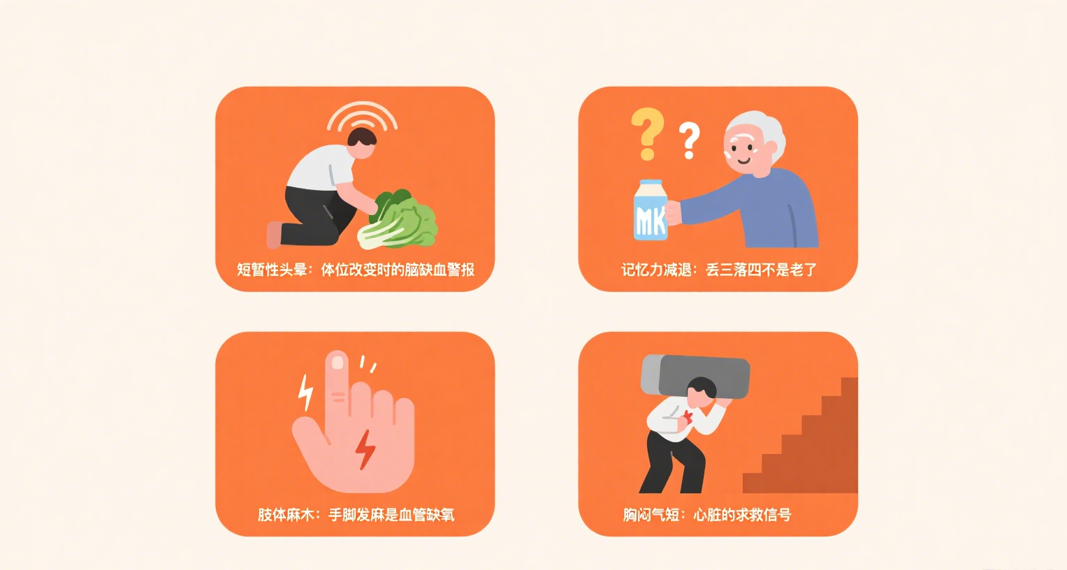 早上蹲在厨房捡青菜,刚站起来就天旋地转,扶着冰箱才稳住;想给孙子拿牛奶,转身就忘了要做什么;晚上看电视时,手指尖发麻像过电——这些“小毛病”,可能是血管给你的紧急警告!