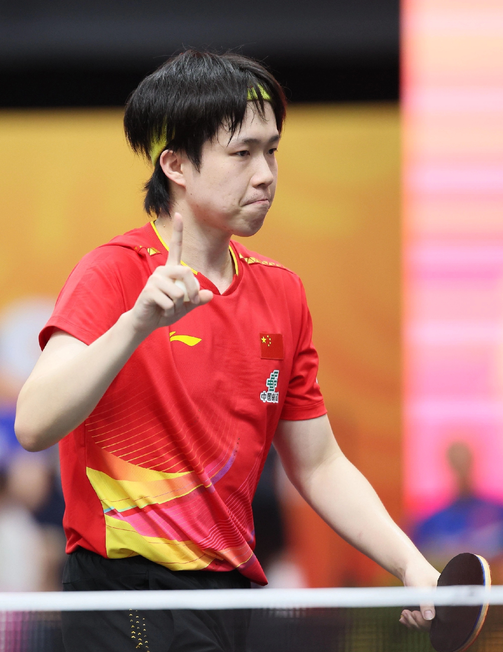 第四盘比赛,王楚钦再度出战,对阵张本智和,又是激战五局,王楚钦在决胜局落后的情况下,完成逆转,以3比2险胜。五局比分:8比11、11-1、11-9、13比15、11比8