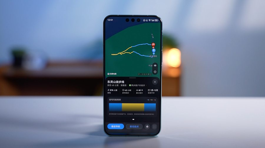 出发前的规划,往往是新手最容易低估的一环。老手会研究地形图、分析季节气候、预判通信盲区,而业余用户更多依赖网上的零散攻略。好在花瓣地图集成了华为与两步路联合打造的超10000条专业户外线路,覆盖徒步、越野、登山等多种难度等级。另外,华为Mate 80系列还首发“路线信号风险预测”功能,让你在出发前就掌握了“上帝视角”。退一步来说,即便身处无网环境,也能通过北斗卫星查询未来12小时或3天的天气预报。