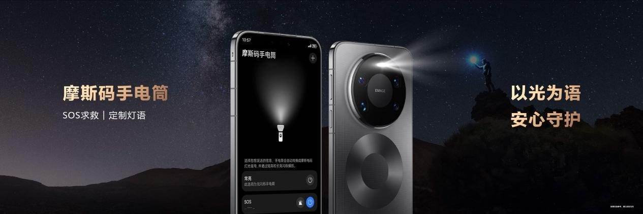 当意外真的发生,兜底能力就显得尤为珍贵。华为Mate 80系列内置了详尽的离线户外救援手册,涵盖失温、迷路、脱水等常见风险的应对指南;长按电源键可一键触发SOS紧急求助,手机能在无网络状态下自动通过北斗卫星发送精确位置与求救信息;其摩斯码手电筒功能,更能通过闪光灯发出国际通用的SOS求救信号。