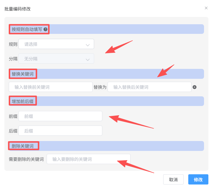 4. 批量修编码:仓库再也没发错过货商品编码这玩意儿,平时没人管,一到发货就出问题。编码乱七八糟,仓库扫不出来,发错货、退换货,全是成本。