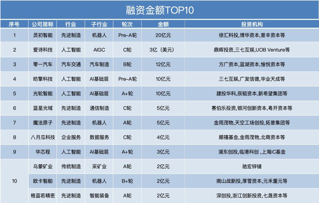 从已披露的数据来看,本周融资金额过亿的交易共有33笔,集中在AI、机器人、汽车、医疗等领域。交易排名前十项目如下。