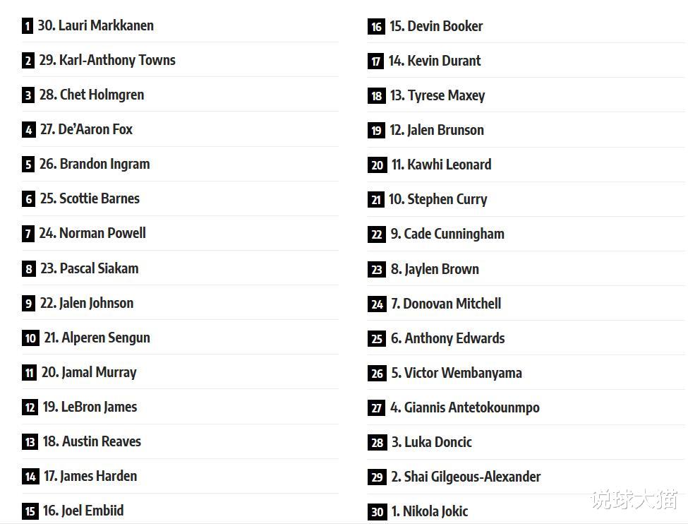 至于詹姆斯和杜兰特,在媒体给出的排名当中分别为第19和第14!