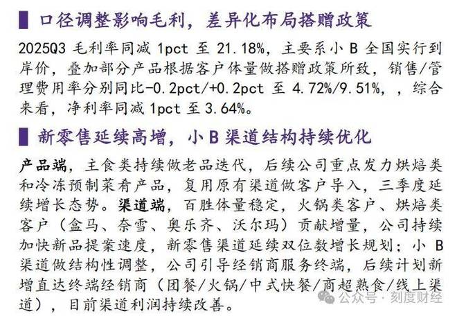 另一方面聚焦烘焙类、冷冻预制菜肴等高毛利品类,复用现有渠道资源进行客户导入,通过差异化竞争提升溢价能力。
