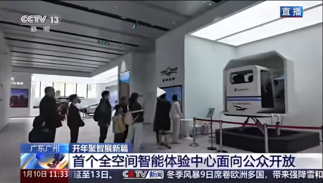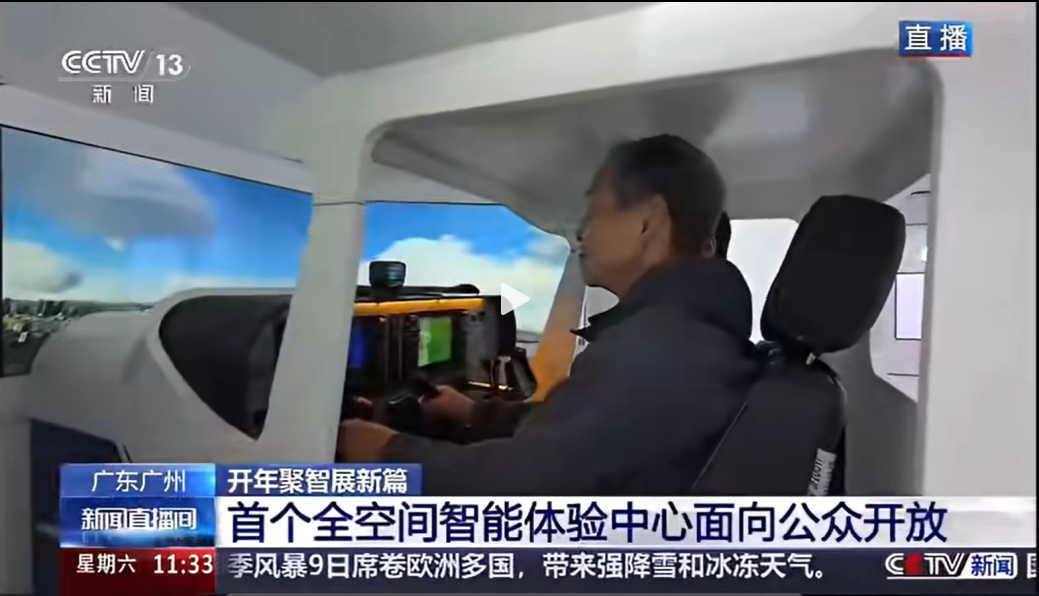 近日,广州海心沙全空间智能体验中心向公众开放期间,我司入驻该中心的全动固定翼模拟飞行设备,凭借出色的技术性能与沉浸式体验,成功获得中央电视台CCTV13频道专题报道,彰显我司科技创新实力。