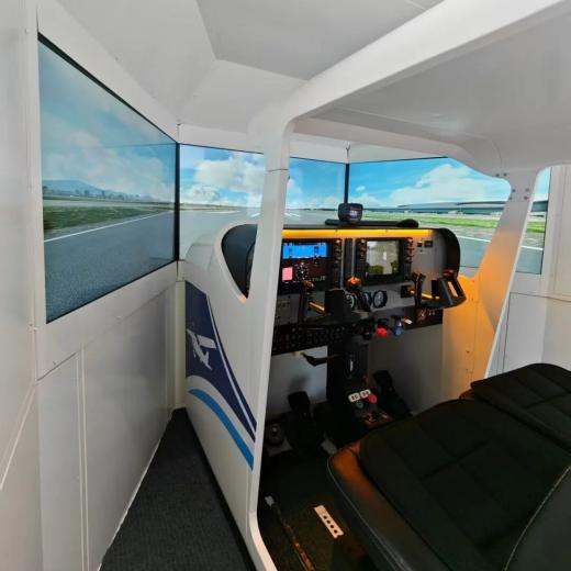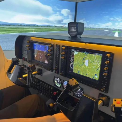 该设备以全球主流的塞斯纳172飞行器为原型打造,采用全仿真单座舱体设计并配备G1000仪表系统。六自由度运动平台精准还原飞行姿态变化,包括俯仰、滚转、偏航、升降、横移、纵移,带来极具质感的物理反馈。结合三屏显示系统,营造出高度沉浸的飞行视野体验。