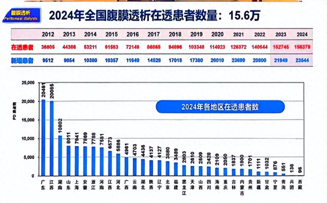 2024年,全国腹透在透总人数达到15.6万,越来越多的肾友将腹透作为首选治疗方案。
