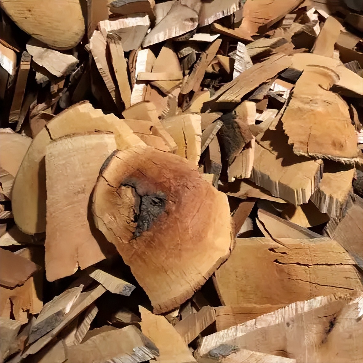 半枫荷呈不规则片块状。栓皮表面灰褐色或红褐色,有纵皱纹及疣状皮孔。质坚硬。断面皮部棕褐色,具细密纹理。纵断面有纵向纹理及不规则的纵裂隙,纤维性强。气微,味淡微涩。