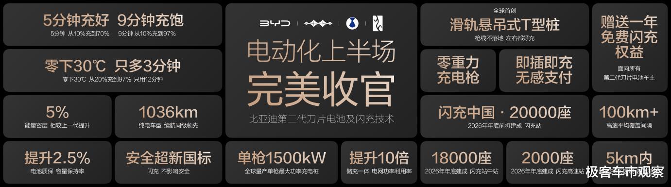 第二代刀片电池及闪充技术的发布,与“闪充中国”战略的落地,标志着 “充电慢”、“低温充电难”这两大世界性难题已被攻克,新能源汽车电动化的“上半场”至此完美收官。