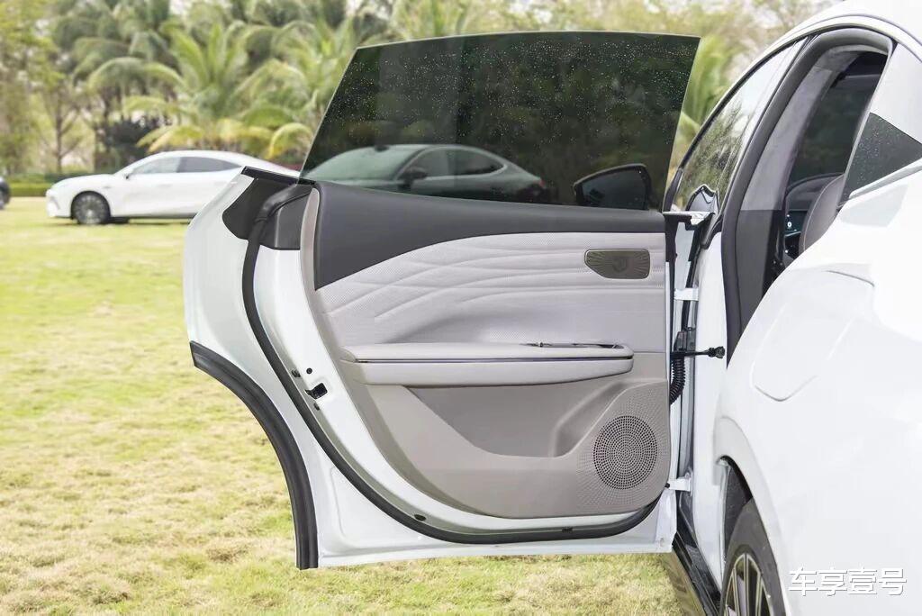 同时通过隆起的腰线,和溜背的弧度,勾勒出动感的运动张力。还有隐藏式的门把手,和无框车门的搭配,降低风阻的同时还能提升科技感与未来感。