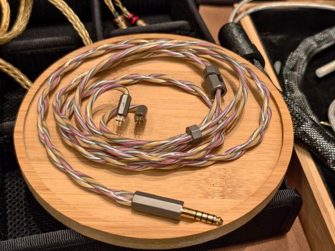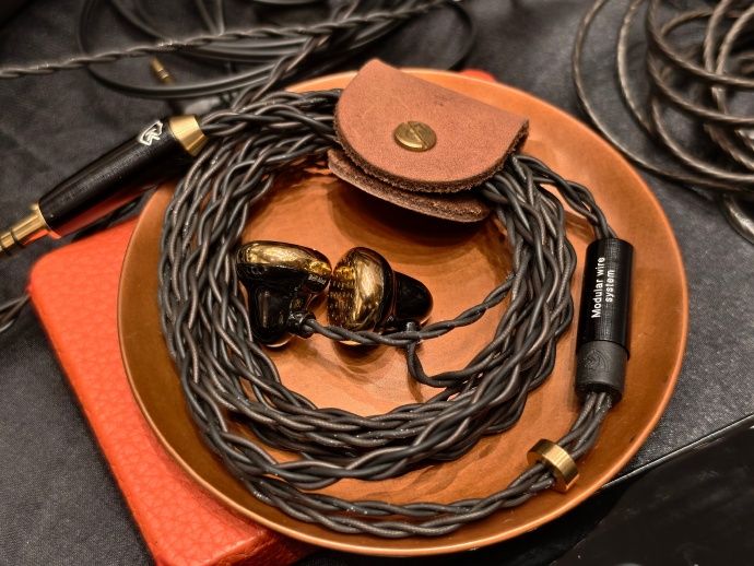 Kaiser推出了一个叫“臻碳”的旗舰,1圈4铁4静电,售价大概在两万左右,现场带了两个版本,一个是比较醇厚扎实,高频有点暗,声场规规矩矩、没有什么明显短板,听着有点无聊,一个高频非常华丽,声场更打得开、女声明亮度更好,但高频给的有些发冲了、柔顺度不好,同时也让男声过分年轻化,这个是老板刻意调出来给大家选的俩版本,但都有一些太极端了,需要找个平衡点。