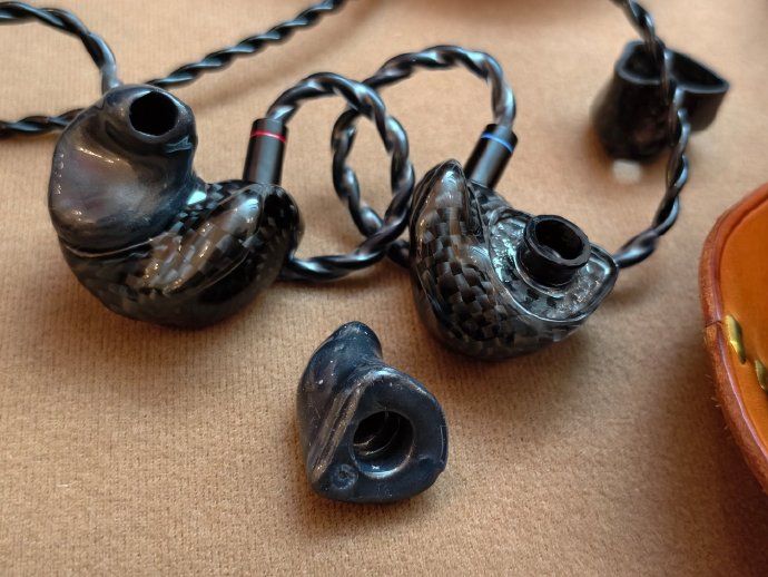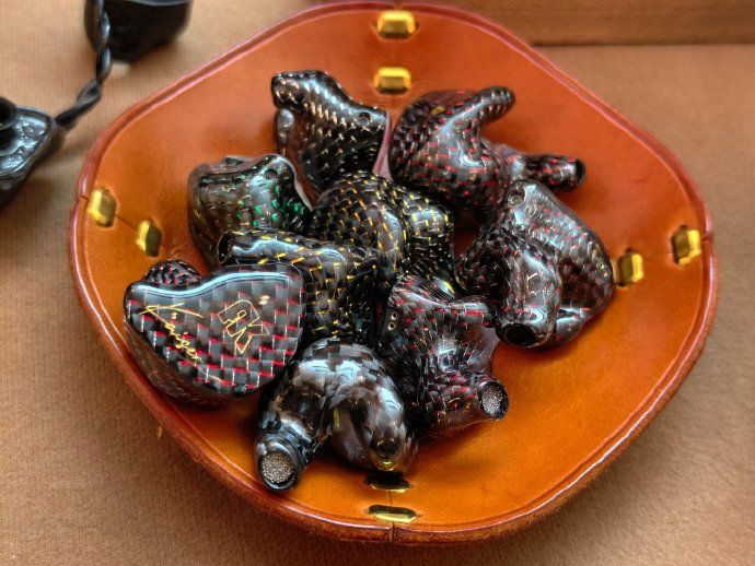 不过这家的工艺是有点东西的,可以做纯碳纤维的私模。既有树脂的低密度带来轻便、但外壳硬度接近钢材,现场也有挑战,如果能摔裂他们的耳机壳,送价值5488的耳机。