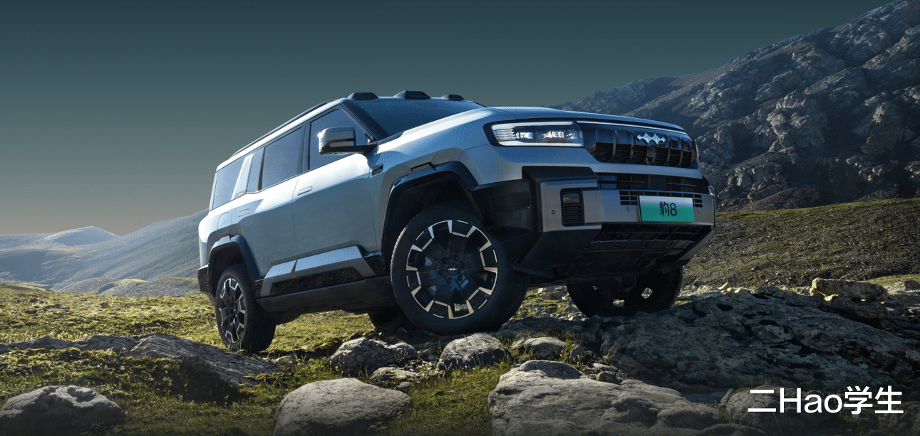 方程豹豹8,六七座可选,指导价37.98万—40.78万元;非承载式车身,前后双叉臂独悬,5195*1994*1905mm,轴距2920mm,2.0T高功纵置发动机,最大功率180kW,最大扭矩380N•m;前后双电机,电动机最大功率前200后300kW,最大扭矩前360后400N•m;智能电四驱,高配“三把锁”。
