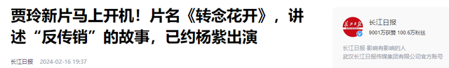 长江日报-2024-02-16——贾玲新片马上开机!片名《转念花开》,讲述“反传销”的故事,已约杨紫出演