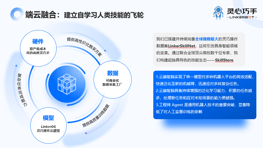 2026 年全球具身智能数据集市场规模将达 50 亿元,年增长率超 40%。由「灵心巧手」构建的 LinkerSkillNet 数据集,通过联合全球顶尖高校数千位专家,让高校、中小厂商也能低成本采集数据,目前已与 20+ 高校、企业达成数据共享合作,将引发具身智能领域的变革。