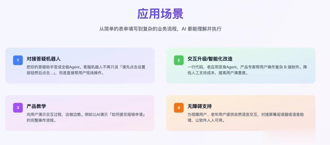 应用场景PageAgent 不是一个只存在于实验室的项目,它在实际业务中能发挥巨大价值: