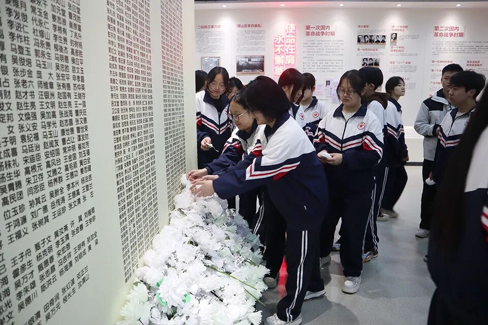 随后,全体师生参观了英灵堂,通过一张张图片、一个个历史故事,追忆革命历史,了解先烈们舍生忘死、前赴后继、为他人谋幸福的高尚品德。