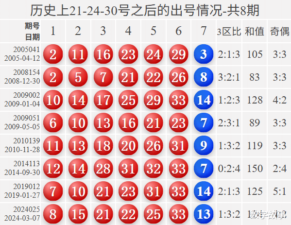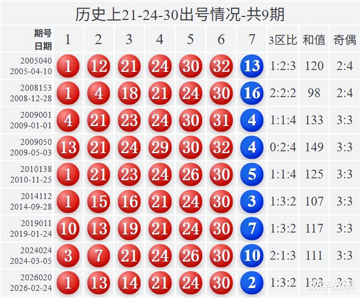 双色球红球含21-24-30历史统计