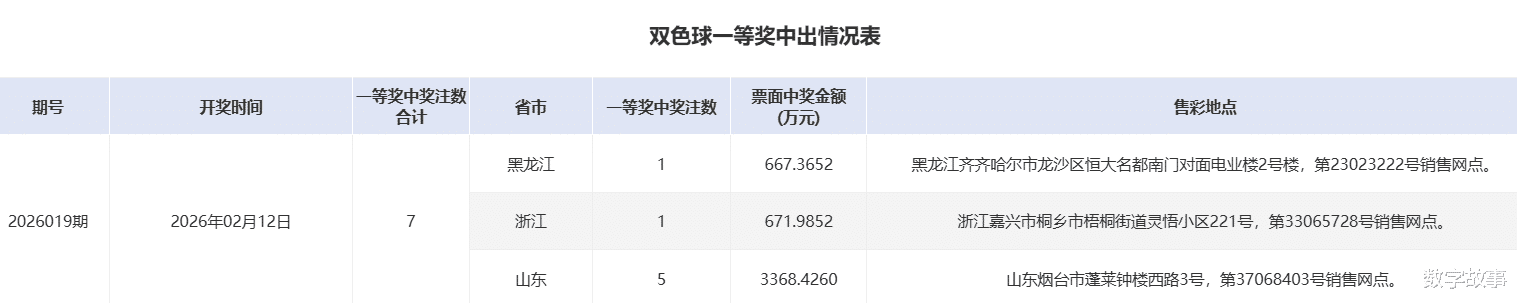 双色球26019期一等奖中奖详情