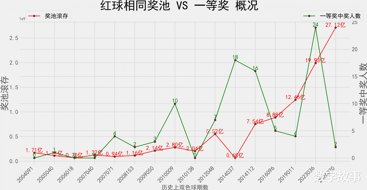 奖池滚存&一等奖数 走势图: