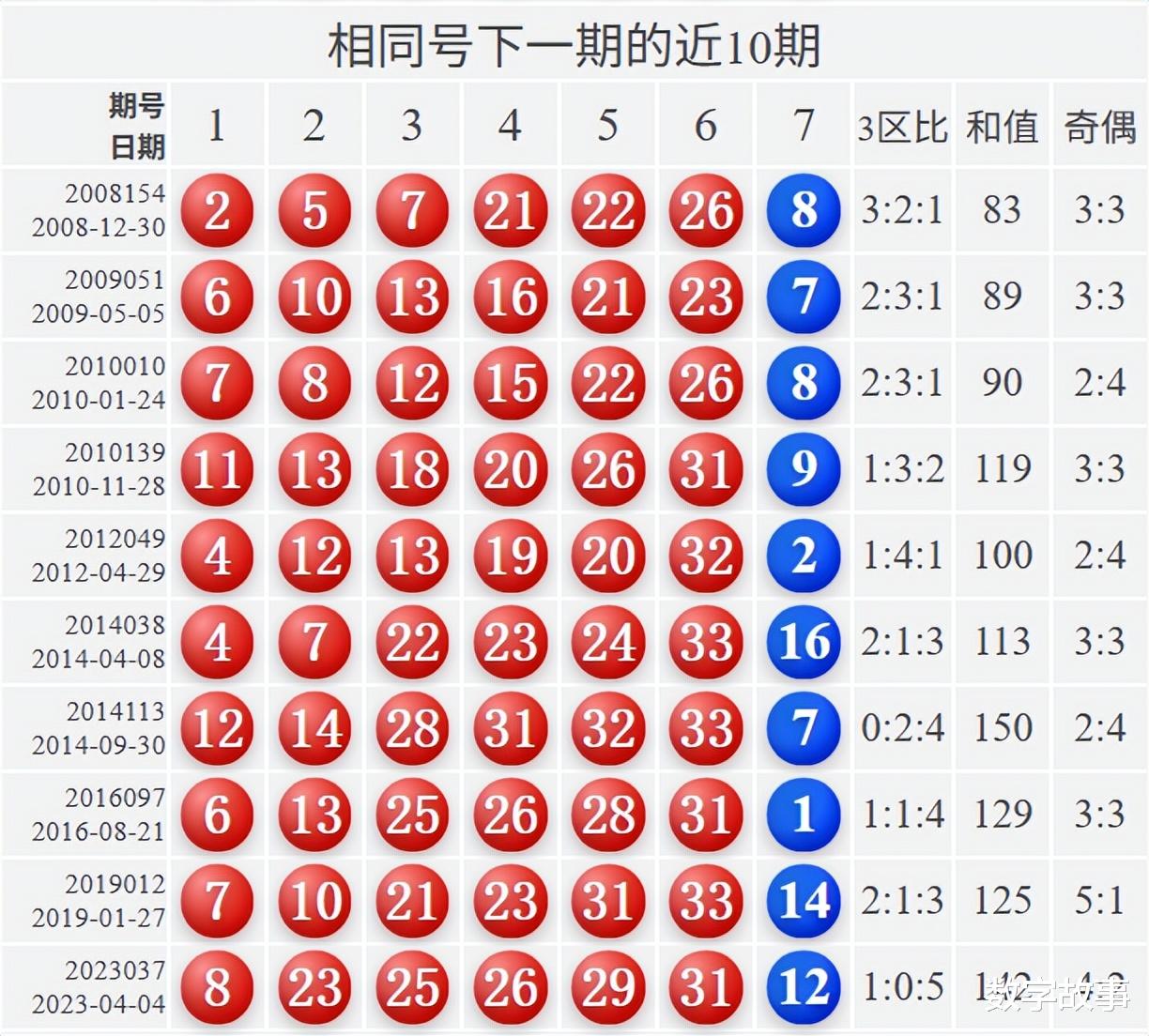 相似号下一期的近10期统计: