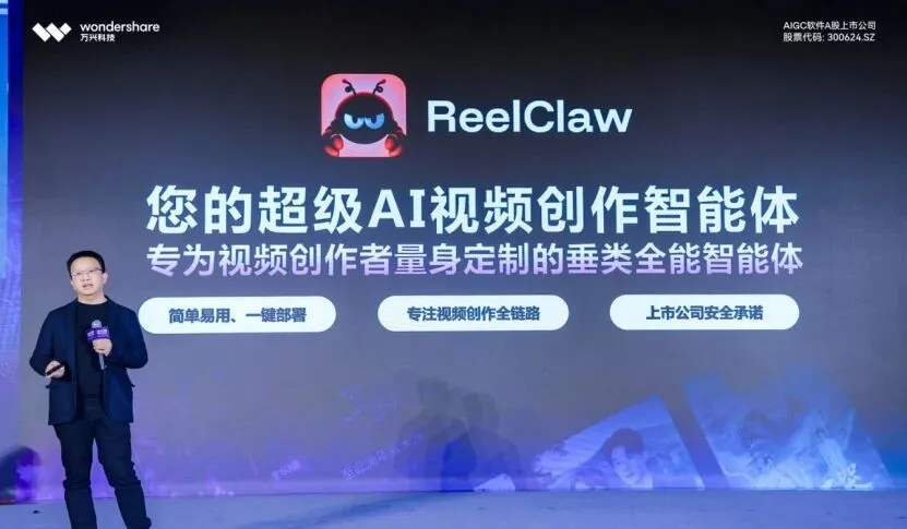 上市公司万兴科技近期发布了AI驱动的一站式精品漫剧创作平台——万兴剧厂,并宣布其全球首个视频创作全链垂类智能体“ReelClaw”即将上线。这款支持一键部署、打通从创意到成片全链路音视频创作的工具,目标直指“垂类全能智能体”。