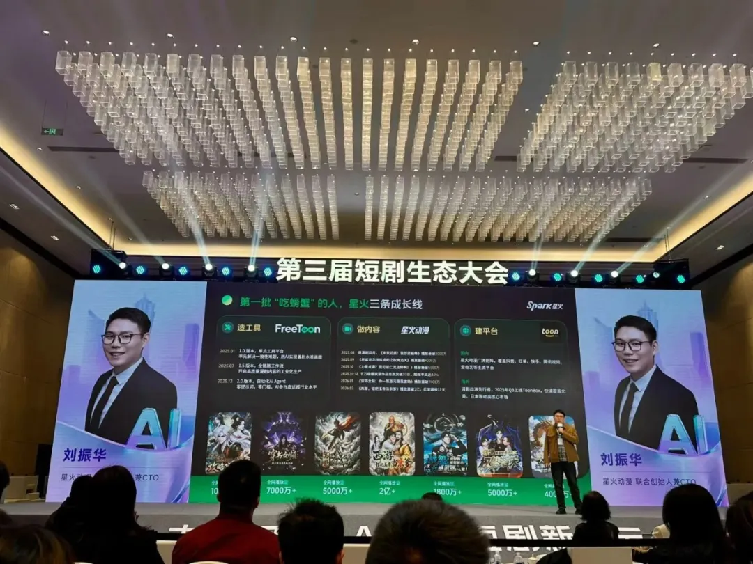 第三届短剧生态大会上,有嘉宾将1000万播放量视为AI短剧爆款的衡量标准线。星火动漫联合创始人兼CTO刘振华透露,该公司的漫剧爆款率达40%。