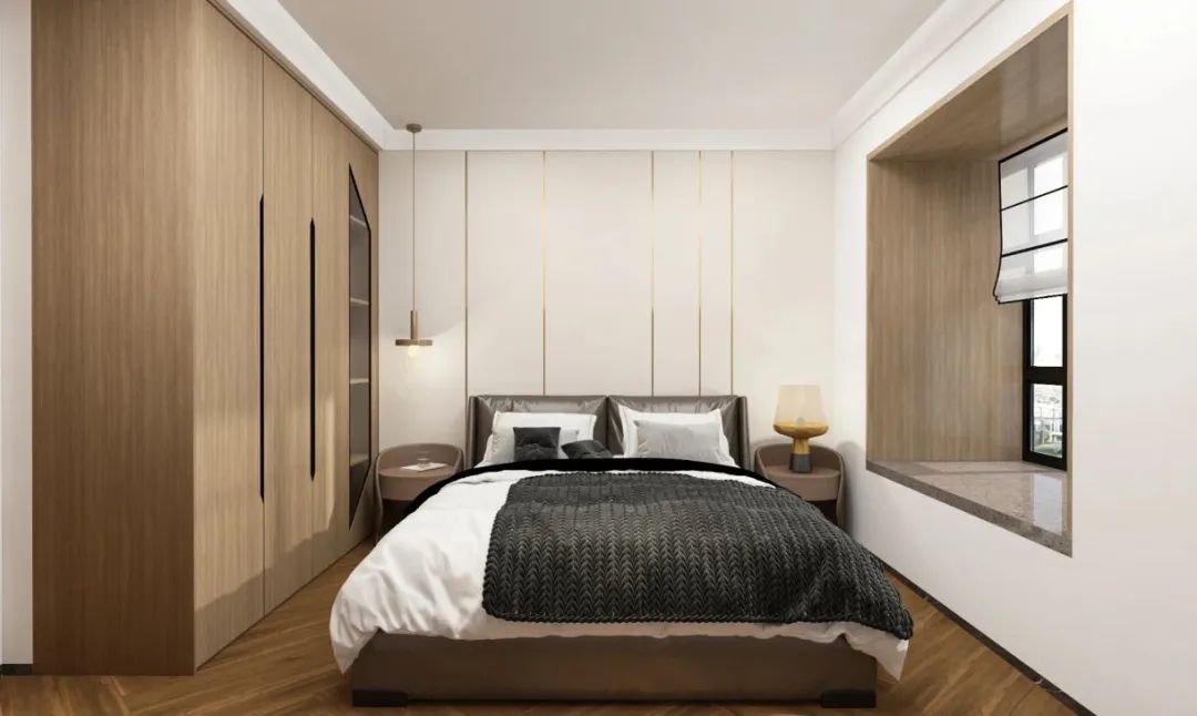 2、卧室不要做复杂吊顶,预算低的可选择石膏线,预算高的可以选择双眼皮吊顶,简约大方又不容易过时。
