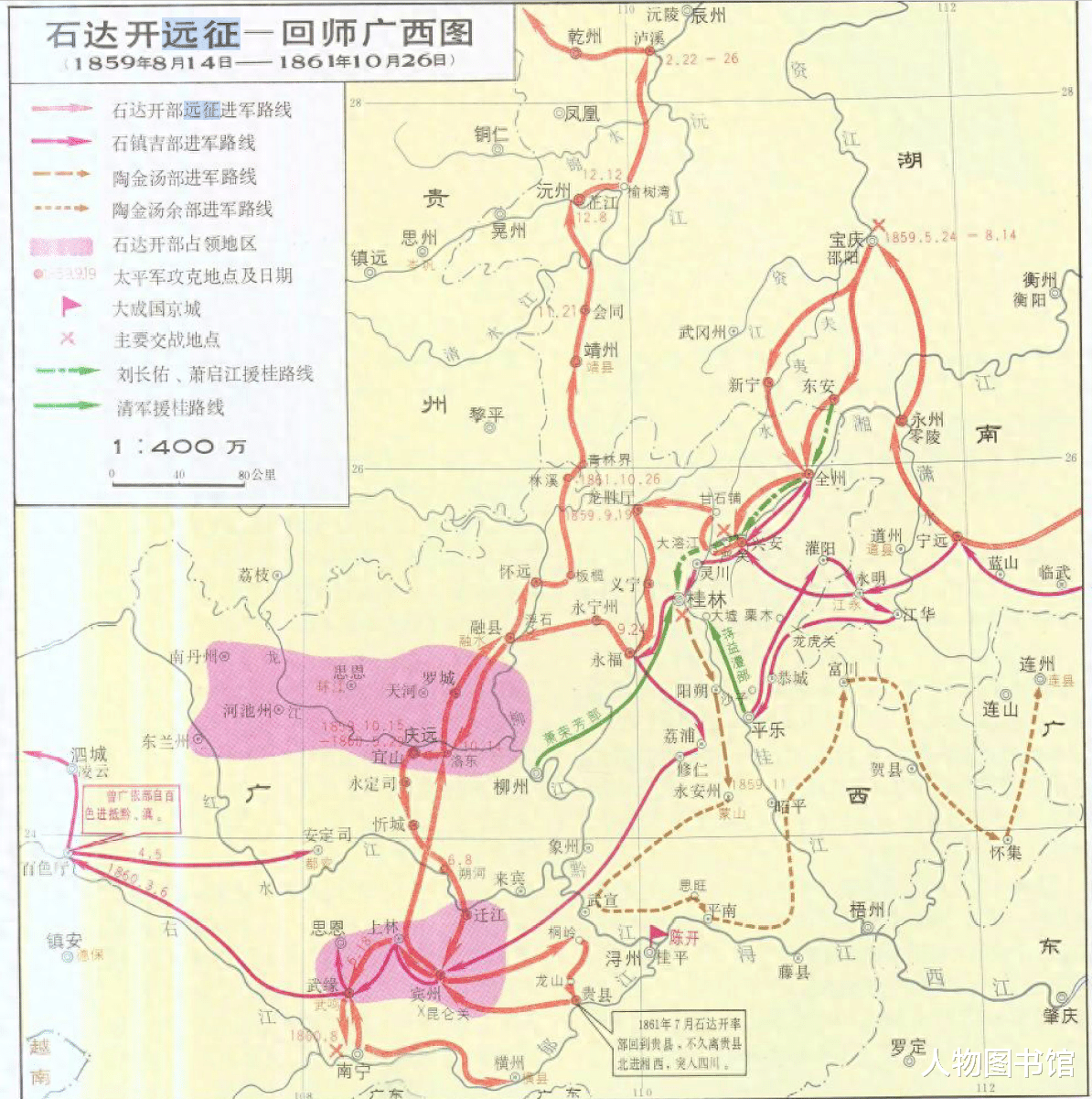 石达开在广西也没有打开局面,而且湘军一直在尾随支援,石达开越来越困难了。