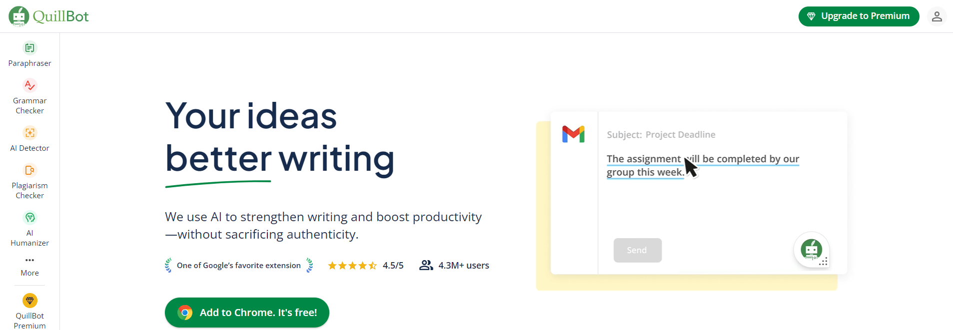 QuillBot是一款聚焦于文本优化的工具,能够显著提升AI论文写作的质量。它支持将AI写论文生成的内容转化为更加自然流畅的语言。同时,QuillBot提供多种同义替换功能,使得表达更加丰富多样,非常适合需要AI写论文的用户。
